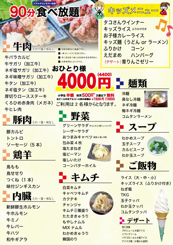 - 食べ放題は大人2名様からのご利用となります。