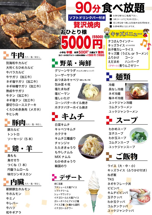 食べ放題メニュー