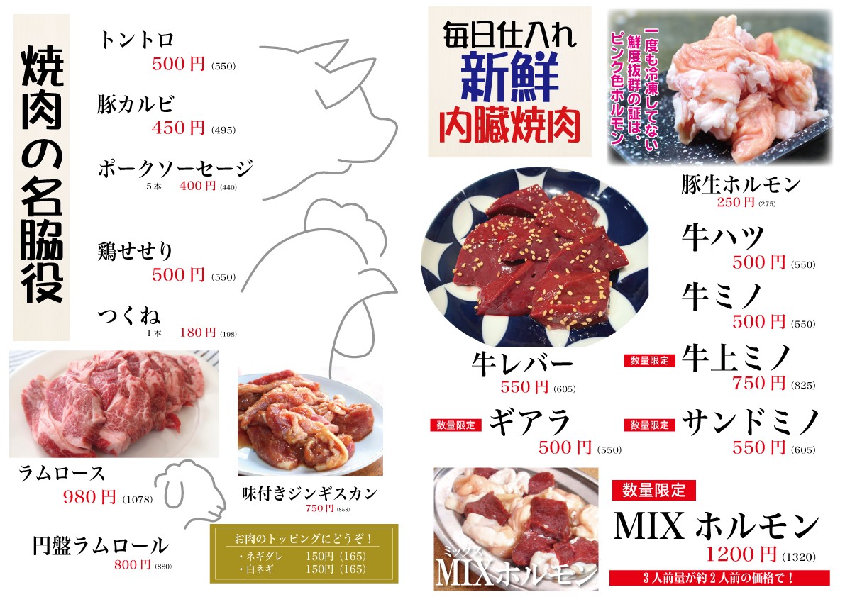 | ジャンル | 焼肉(和牛・ホルモン・ジンギスカン) |
